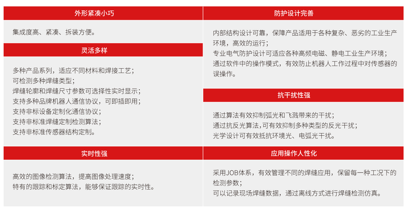 激光視覺焊縫跟蹤系統(tǒng)主要由激光傳感器和控制主機(jī)組成,激光傳感器用于焊縫信息的主動(dòng)采集,控制主機(jī)負(fù)責(zé)焊縫信息的實(shí)時(shí)處理,并與工業(yè)機(jī)器人或焊接專機(jī)保持實(shí)時(shí)通信,同時(shí)具有尋位和跟蹤功能,滿足智能化焊接的需求。