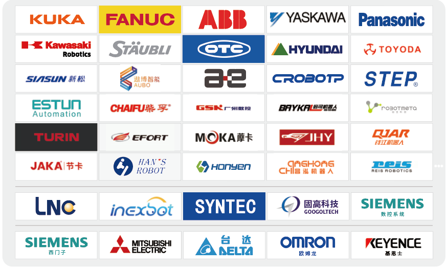 通過(guò)多樣化的通信協(xié)議,可與世界主流機(jī)器人進(jìn)行無(wú)縫對(duì)接,即插即用,無(wú)需二次開發(fā),更無(wú)需復(fù)雜配置。同時(shí),支持與多種PLC和運(yùn)動(dòng)控制器進(jìn)行通信,輕松應(yīng)對(duì)客戶現(xiàn)場(chǎng)的專機(jī)設(shè)備。除此之外,客戶還可以采用自定義協(xié)議與傳感器進(jìn)行通信。